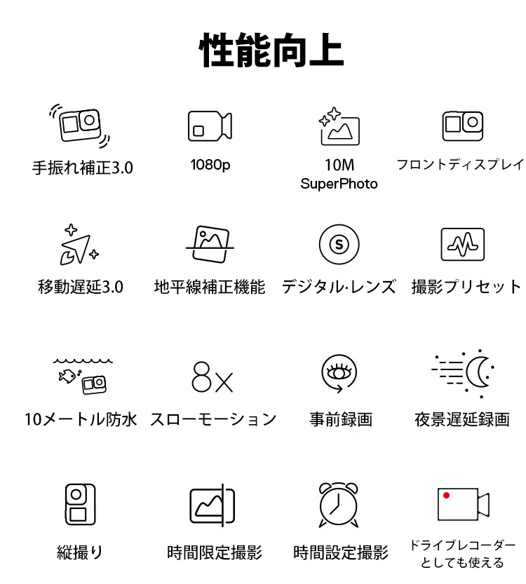 HD 1080P超高画質アクションカメラ